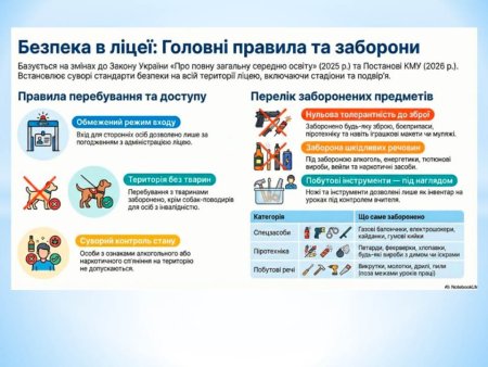 Шановні батьки та учні! Забезпечення безпечного освітнього середовища є ключовим завданням Міністерства освіти і науки України та адміністрації нашого ліцею. Ця пам’ятка розроблена на виконання нових державних стандартів безпеки з метою захисту життя та здоров’я кожної дитини. Ми закликаємо вас до відповідальної співпраці, адже чітке дотримання встановлених правил дозволяє створити простір, де навчання є продуктивним, а перебування — захищеним.