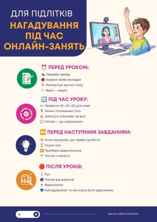 » Нагадування для підлітків та молодших школярів, як поводитися під час онлайн занять